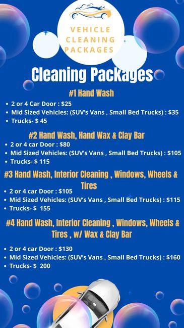 Book your vehicle cleaning today. Start by clicking the link below, then choosing your vehicle type